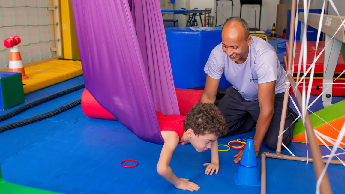 Nosso foco é intervir nos impactos sensório-motores apresentados por esse público no intuito de proporcionar organização do corpo e autorregulação, bem como intervir nos aspectos motores e psicomotores.